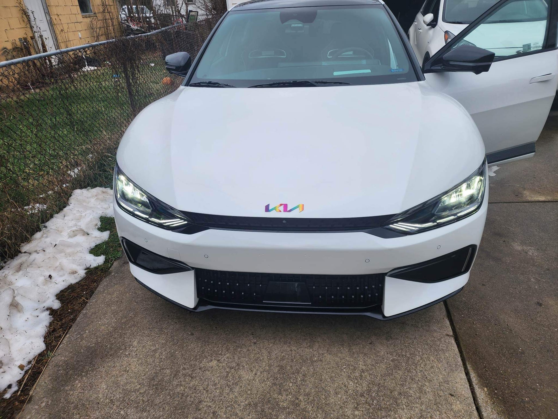 Keywords: Vinyl overlay, KIA emblem, Kia EV6, customized look, perfect fit, easy installation, high-quality vinyl material, variety of colors and finishes, durable, weather-resistant.